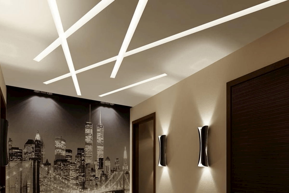 Установка натяжных потолков со световыми полосами любых видов и конфигурации